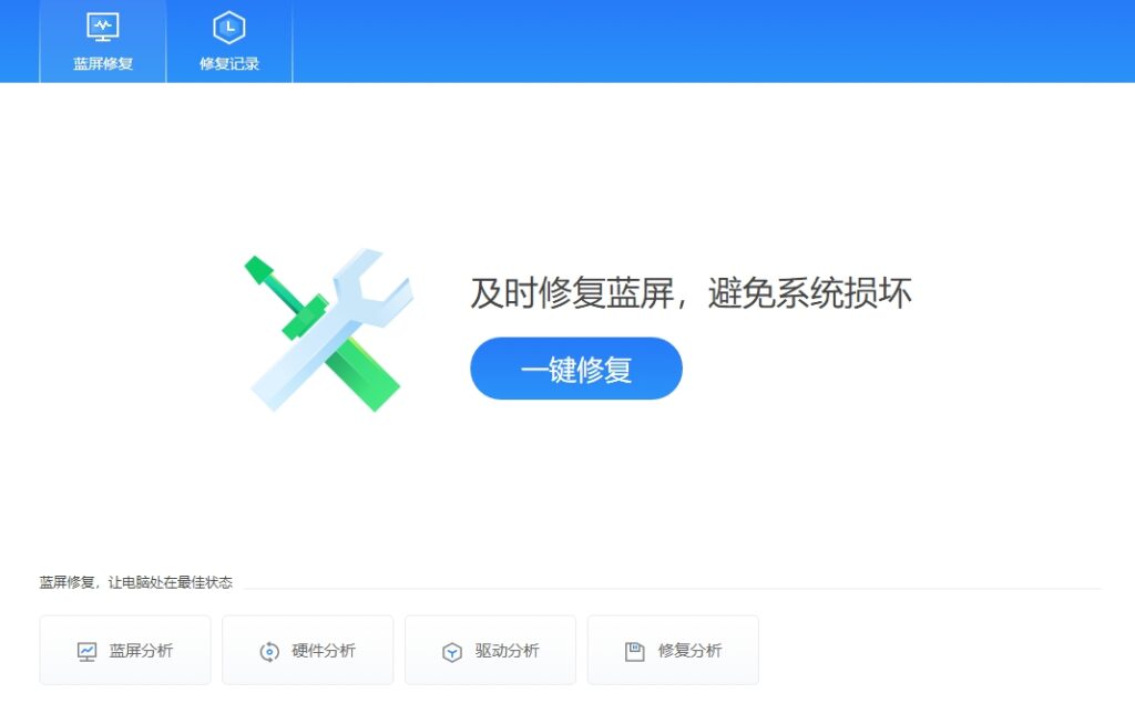針對電腦藍屏問題,進行各種故障分析檢測,一鍵修復(fù)藍屏問題。