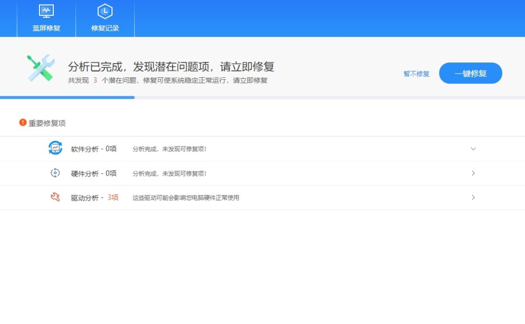 能修復(fù)各種異常的藍屏問題,檢測異常,快速修復(fù)