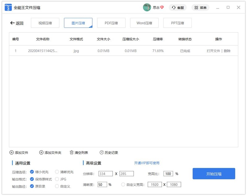 壓縮完成后,您可以單擊”打開文件”以查看已處理的圖片文件。