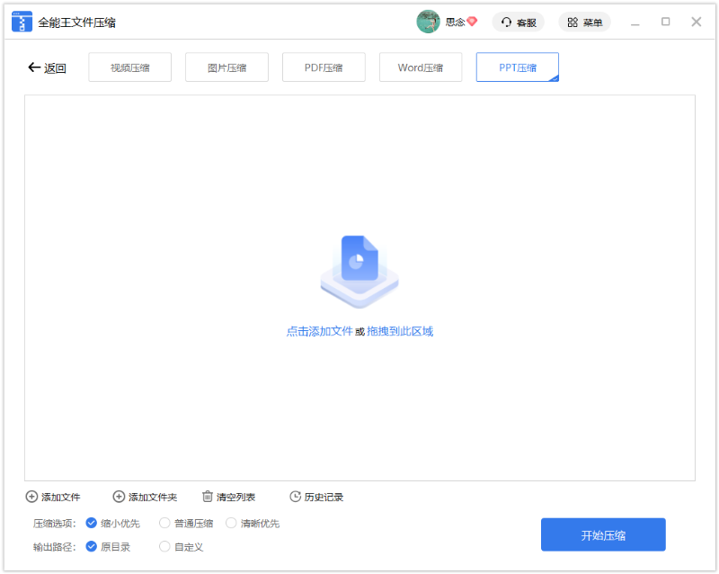 2. 拖動(dòng)要壓縮的文件,或單擊”添加文件”以添加文件。